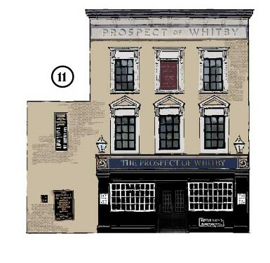 The current (Victorian) name, The Prospect of Whitby was taken from a cargo boat that would be moored next to the pub after trips down the coast carrying coal from Newcastle to London.