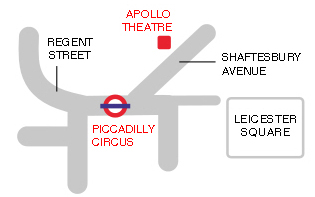 A short walk from Piccadilly Circus, the Apollo Theatre is one of four theatres on the left side of Shaftesbury Avenue