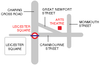 The Arts Theatre is on Great Newport Street, less than a minutes walk from Leicester Square station