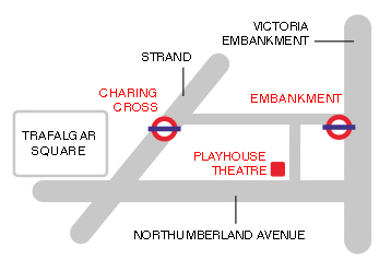 The Playhouse theatre is at the junction of Craven Street and Northumberland Avenue. Embankment and Charing Cross stations are just a few minutes walk.