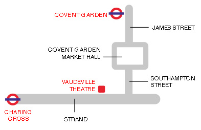The Vaudeville Theatre is about 7 minutes walk from Charing Cross station and about 10 minutes walk from Covent Garden station.
